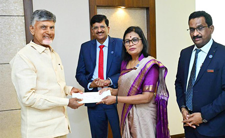 The employees of Union Bank Of India came together and generously donated to Andhra Pradesh Chief Minister Flood Relief Fund to assist the people affected by floods during the year. MD & CEO of the Bank A. Manimekhalai handed over the cheque for Rs. 5,90,01,087/- to the Chief Minister of Andhra Pradesh.